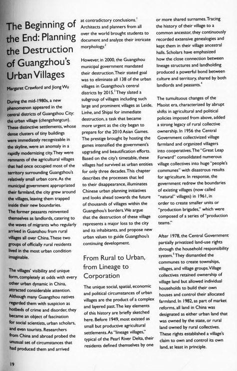 The Beginning of the End: Planning the Destruction of Guangzhou’s Urban Villages Villages in the City: The Beginning of the End